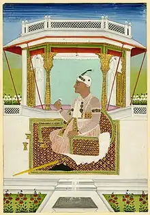 Portrait of Nizam ul-Mulk (Asaf Jah II, Nizam Ali Khan) sitting in an open pavilion on a carpet (British Library)