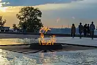 In 1965, a memorial complex in honor of Nizhny Novgorod citizens who died in World War II was created, near the obelisk of Minin and Pozharsky; this included an eternal flame.
