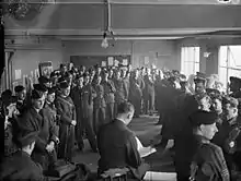 During the last two weeks of March and the first two weeks of April 1941,[11] Wellingtons and their crews of No. 149 Sqn were used for the making of the film Target for Tonight. Filmed on location at RAF Mildenhall, the Station took the fictitious name of Millerton Aerodrome in order so not to give away valuable operational information to the enemy, and several other aspects were altered involving the day-to-day operations. The film, produced by the Crown Film Unit, focused on the planning and execution of an air raid on Germany, as seen by the crew of Vickers Wellington OJ-F 'F for Freddie'. The exception to this was Percy Pickard who was at that time Squadron Leader with No. 311 (Czechoslovak) Squadron.[12] Pickard played the part of Sqn Ldr Dickson, the captain of 'F for Freddie'.