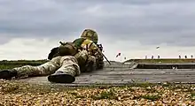 A reservist Gunner with 504 (County of Nottingham) Squadron, Royal Auxiliary Air Force fires a machine gun during two weeks Annual Continuous Training at Hythe Range Complex.