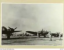 On 3 May 1937, the squadron was reformed at Abingdon from 'B' Flight of No. 40 Squadron, equipped with Hawker Hinds.[4] In February 1938 the squadron re-equipped with Bristol Blenheims.[7] The squadron was posted to Singapore in August 1939 and moved to Alor Star in northern Malaya in February 1940.[8] Japan invaded Malaya on 8 December 1941 and the squadron was evacuated to Butterworth on 9 December.[9] Later that day, an attack on Singora airfield was planned, but Butterworth was attacked by Japanese aircraft when the British force was preparing to take off, with only one Blenheim, piloted by Squadron Leader Arthur Scarf of 62 Squadron getting away, carrying out a single-handed attack on Singora. His Blenheim was heavily damaged by Japanese fighters and anti-aircraft fire, badly injuring Scarf. Despite his injuries, he managed to make a forced landing at Alor Star, saving the rest of his crew. He died in hospital that evening. Scarf was eventually posthumously awarded the Victoria Cross for his actions that day.[10][11] Butterworth was heavily damaged by the Japanese attack on 9 December, and the squadron moved again, this time to Taiping, Perak.[12] It withdrew again on 19 December, this time to Singapore.[13] Losses, mainly from Japanese attacks on its airfields were heavy, and the squadron re-equipped with Lockheed Hudsons and moved to P2 airfield near Palembang, Sumatra in January 1942.[14][15] Six 62 Squadron Hudsons took part in attacks against Japanese troopships landing at Endau, Malaya on 26 January, two being shot down by Japanese Ki-27 fighters.[16] The squadron was evacuated from P2 to Java when Japanese paratroops landed at Palembang.[17] The squadron operated closely with those of No. 1 Squadron RAAF,[2][18] before being disbanded on 20 January 1942, its remaining Hudsons being transferred to 1 Squadron RAAF.[19]