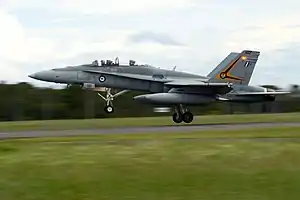 ![]() An F/A-18B taking off from RAAF Base Williamtown during Exercise Diamond Shield in March 2017; this exercise formed part of the air warfare instructor course[1] | |