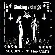 No Gods / No Managers is the only studio album and final release by American hardcore punk band Choking Victim. The album was released in 1999 through Hellcat/Epitaph Records and re-released on LP format by Epitaph in 2004. Being the sole full-length album of Choking Victim, (they broke up immediately after recording the album), it became hugely popular in the punk scene. It inspired many nascent bands, and the band members of Choking Victim went on to form other bands, most notably Leftöver Crack.