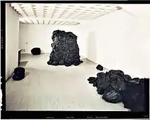At Sekine’s first solo exhibition at Tokyo Gallery in 1969, he exhibited Phase of Nothingness—Oil Clay (1969) (空相—油土), which consisted of a huge mass of oil clay exhibited in its natural state. Viewers were allowed to touch this work and reshape it, implying that sculpted or not, and in contrast to its dominant physical presence, this “sculpture” was transient. Of this piece, curator Simon Groom wrote:[4]