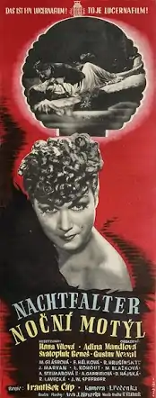 Nocturnal Butterfly (Czech: Noční motýl) is a 1941 Czech drama film directed by František Čáp based on a novel by Karel Novák.[1] It was shown in 9th Venice Film Festival where it won a prize Targa di segnalazione.[1]