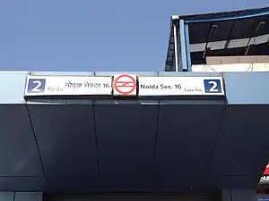 The Noida Sector 16 is a metro station on the Blue Line of the Delhi Metro railway, in the city of Noida in Uttar Pradesh, India.[1]