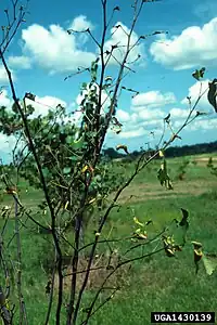 The stinging larvae feed on hackberry and redbud.