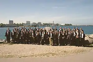 Gerd Puls in particular shaped the development of the orchestra in the post-war period. During his 34 years as Generalmusikdirektor, he led his orchestra to the status of an A orchestra in 1973.[1][2] In 1990, the orchestra was named Norddeutsche Philharmonie Rostock.[1] His successor Michael Zilm took over in 1991, with an orchestra of 90 musicians.[1] He was able to perform Gustav Mahler's orchestral works including the Second Symphony, and led the orchestra on a tour of Sweden with Mahler's Seventh Symphony in 1995.[1] Other programs of the 1990s focuses on 20th-century music by composers such as Arnold Schönberg, Paul Hindemith and Alban Berg. In 2000, the Norddeutsche Philharmonie became a member of the European Film Philharmonic, an orchestra association which also includes the WDR Rundfunkorchester Köln, the Staatskapelle Weimar and the Brandenburgisches Staatsorchester Frankfurt (Oder), aimed at promoting the performance and recording of orchestral film music. Within this framework, the orchestra recorded the music by Hans Peter Ströer for Heinrich Breloer's film Buddenbrooks. In 2002, the orchestra made the first recording of Karl Weigl's Piano Concerto for the left hand, with Florian Krumpöck as the soloist and conducted by Manfred Hermann.[3]