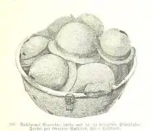 Drawing of a basket of shield bosses found within the Myklebust viking ship in Nordfjordeid