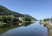Spanning over 10 kilometres (6.2 mi) the Eid (Eidselva) is a river that flows through Nordfjordeid. It has its outlet from the Hornindalsvatnet and extends down to the Eidfjorden in Nordfjordeid. The river is famous for its salmon fishing, the largest salmon ever caught in the river was 27.6 kilograms (61 lb). It was caught by Martin Hjelle in 1944. The fishing season is from June to the end of August. The river is listed as a national salmon river by the Norwegian government. This offers it special protection against harmful interventions and activities in the watercourses and against aquaculture and pollution.[23]