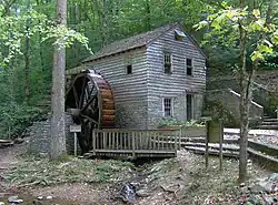 The Rice Gristmill was built by James Rice (d. 1829) in 1798. The mill originally stood on Lost Creek in what is now Union County several miles to the east (the creek is now part of an embayment along Norris Lake). The mill, which is powered by an overshot wheel-driven turbine, was refurbished and remodeled for various tasks throughout the 19th century. When the Tennessee Valley Authority purchased the Rice property along Lost Creek in 1935, the mill was in the possession of James Rice's great-grandson, Rufus Rice. The CCC and the National Park Service carefully dismantled the mill and reassembled it at its present location.[17]
