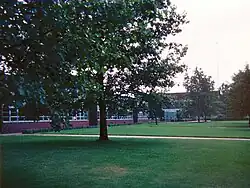 The school opened in 1954 as the North Allegheny Junior-Senior High School with 33 classrooms for grades 7-12.[3] The design of the building was award-winning in its time, with distinct features include six letter-coded sloping hallways (or ramps) and most classrooms divided by outdoor courtyard spaces (unusual in school design for the time period). The building was expanded further in 1957 and 1963, adding classrooms in the rear of the building. The building became North Allegheny Senior High School (NASH) for grades 11-12 in 1969 upon the opening of Thomas E. Carson Intermediate High School (now Carson Middle School). The building assumed its current role as the Intermediate High School for grades 9-10 in 1974, when the new and current Senior High School in Wexford opened. A major renovation in 1997 expanded the building through the addition of the lower gym, larger cafeteria, and new front wing addition. The most recent renovation to the facility was completed in 2017.[4]
