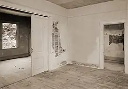 Disaster came on September 10, 1854, when a fire swept the colony's mill and all its contents.[29] No insurance was recovered, and the community found itself facing $30,000 in accumulated debt with no ready means of repayment.[29] Of this, some $9,000 remained unpaid on the original mortgage, with additional bills accumulated for a new engine and boiler for the mill.[30] Additionally, at the time of the fire the mill had housed a large quantity of wheat purchased on credit, for which the phalanx was financially responsible.