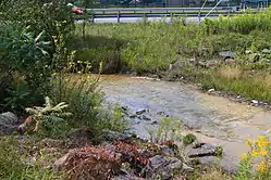 A prestressed box beam or girders bridge carrying Pennsylvania Route 61 over North Branch Shamokin Creek in 2008 in Atlas. It is 53.2 feet (16.2 m) long.[16] This bridge has been slated for preservation as part of the state of Pennsylvania's "Decade of Investment".[17] A project to remove waste rock piles in the watershed of the creek was carried out in 2006 and 2007. The goal of the project was to improve the water quality of several Operation Scarlift discharges in the watershed, thus reducing mine pollution to the creek.[18] In the early 1900s, the old channel of the creek was occupied by rocks and culm banks.[15]