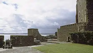 The North Channel naval duel was in some respects a small-scale dress-rehearsal, in reverse, for Jones's 1779 battle with HMS Serapis. Drake had been built as a merchant ship with defensive capability, and bought by the Royal Navy to help fill the gap left when many ships had to be sent to America; even the 20 four-pound guns were not official Navy issue, but her armament as a merchant vessel.[8] The hull was the wrong shape for rapid battle manoeuvres, and not designed to resist cannon fire. Ranger had been built as a fighting ship, and modified by Jones for maximum efficiency: for example, although there were ports for 20 guns, he found it safest to install only 18 six-pound guns. That made for a total broadside weight of 54 pounds, slightly more than Drake's 40 pounds total.[8] But those dozens of Irish volunteers meant that if Drake could grapple and board Ranger the Americans would be in trouble.