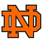 The school's athletics logo is an interlocking "ND" in orange, black, and white colors. It is copied from the University of Notre Dame athletics logo. Other NDHS logos feature black knights riding upon a horse in armor.