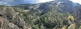 The North Fork Owyhee Wilderness has canyons over 1,000 feet (300 m) deep, sagebrush, and grassland plateaus. These canyons in Owyhee County have been called "the largest concentration of sheer-walled volcanic rhyolite and basalt canyons in the western United States".[1][5]