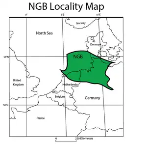 The North German Basin is a passive-active rift basin located in central and west Europe, lying within the southeasternmost portions of the North Sea and the southwestern Baltic Sea and across terrestrial portions of northern Germany, Netherlands, and Poland.[1] The North German Basin is a sub-basin of the Southern Permian Basin, that accounts for a composite of intra-continental basins composed of Permian to Cenozoic sediments, which have accumulated to thicknesses around 10–12 kilometres (6–7.5 mi).[2][3] The complex evolution of the basin takes place from the Permian to the Cenozoic, and is largely influenced by multiple stages of rifting, subsidence, and salt tectonic events. The North German Basin also accounts for a significant amount of Western Europe's natural gas resources, including one of the world's largest natural gas reservoir, the Groningen gas field.[4]