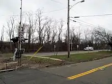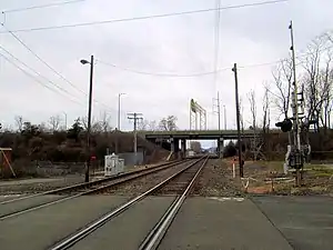 In 2004, the Recommended Action of the New Haven Hartford Springfield Commuter Rail Implementation Study included the construction of a new North Haven/Hamden station as part of the Hartford Line (then just the New Haven-Hartford-Springfield Commuter Rail Line.) Such a station was estimated to cost between $6 million and $9.5 million.[10] The station is proposed to be located off Devine Street in North Haven, adjacent to the intersection of State Street (US 5) and CT-40. Direct access from I-91 will be possible via Route 40, while commuters coming from the Wilbur Cross Parkway (which is intended for traffic bypassing New Haven) will have to use surface streets from the nearest exits. A preliminary design in 2006 located the station platforms between Devine Street and Route 40. A new parking lot west of Route 5 would have been shared between station and park-and-ride uses, with the existing park-and-ride lot dedicated for station parking.[11]