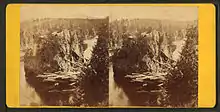Prior to invention of railroads, industrial investment in these cities depended upon anticipated forest resources available to be floated down river. Competition for upper Saint John River watershed forests developed in the 1830s when Bangor interests purchased land containing headwaters lakes and altered Chamberlain Lake to drain into the Penobscot River.[7] This competition was resolved by the Webster–Ashburton Treaty giving Maine control of what became the North Maine Woods.