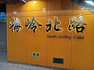 North Meiling Road (simplified Chinese: 梅岭北路; traditional Chinese: 梅嶺北路; pinyin: Méilǐng Běilù) is a metro station on the Line 15 of the Shanghai Metro. Located at the intersection of Daduhe Road and North Meiling Road in Putuo District, Shanghai, the station was scheduled to open with the rest of Line 15 by the end of 2020.[1] However, the station eventually opened on 23 January 2021 following a one-month postponement.[2] It is located in between Tongchuan Road station to the north and Daduhe Road station to the south.