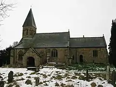 The Church of St Michael and All Angels dates to the 12th century and was expanded in the 14th, 17th and 19th centuries. The site was important in Saxon times, Saxon coffins and swords were unearthed in the 19th century restoration but the first vicar was not recorded until 1282.[7] For many years, St Michael's was the Mother Church of the parish and wider area and corpse roads extended from Thornton-le-Moor and Thornton le Beans which are still marked on modern day Ordnance Survey maps.[4][8] The church is grade II listed and used for services on three Sundays of each month.[9][10]