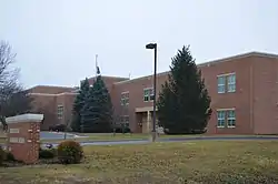 North River High School was a historic public school building located at Moscow, Augusta County, Virginia. Built in 1930, it was a brick building consisting of an auditorium/gymnasium as the core of the building with rectangular gabled blocks on either side containing two rooms with the projecting gable ends. It had a steeply pitched gable roof and entrance portico reflecting the Colonial Revival style. Additions were made to the building in 1942 and 1950. Also on the property was a contributing brick agriculture building.[3]