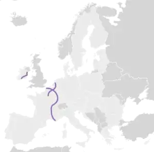 The North Sea–Mediterranean Corridor is the number 8 of the ten priority axes of the Trans-European Transport Network.[1] It stretches from Ireland and the north of UK through the Netherlands, Belgium and Luxembourg to the Mediterranean Sea in the south of France.[2]