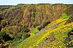 Time and erosion have split the volcanic plateau of Table Mountain into two sections, north and south. There are smaller ravines as well that support various types of trees and woodlands. The top expanse has grasslands with lichen-covered rocks. The winter/spring rains recharge the vernal pools and create waterfalls and wildflower displays.