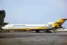 Howard Hughes acquired control of the airline in 1962. The airline's temporary Miami route authority was terminated by a CAB decision that year, and Hughes decided to exit from the company, selling control to a trustee in 1964.[1] Northeast launched an aggressive campaign against the CAB's decision, and got a permanent Florida certificate in 1965.[3] In 1965 the airline was bought by Storer Broadcasting, who tried to rejuvenate Northeast in 1966 with a new marketing campaign and new aircraft.[1] Northeast ordered a fleet of Boeing 727-100s for their Florida routes, and McDonnell Douglas DC-9-30s and Fairchild FH-227s for shorter routes. These "Yellowbirds" featured a new yellow and white livery. In 1966 Northeast was the launch customer for the Boeing 727-200, which they began flying in December 1967.[1] Except for Florida their network was all north and east of Washington National Airport until 1969 when they added three 727 nonstops between Miami and Los Angeles, with Fort Lauderdale getting a short-lived LAX nonstop soon after (fuel stops were sometimes required on these transcontinental 727 flights). Northeast obtained rights to fly between Miami and Montreal in 1967, followed by rights to serve the Bahamas in 1968, and rights to serve Cleveland, Detroit, Chicago, and Bermuda in 1969, along with a new Miami-Los Angeles route authority.[3]