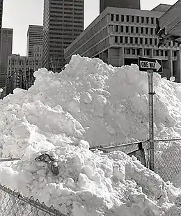 In New York City, it was one of the rare times that a snowstorm closed the schools; the New York City Board of Education closed schools for snow again only once in the next 18 years, on April 7, 1982.[13] Most suburban districts in the area close for snow several times each winter, but they rarely do in the city itself because of relatively easy access to subways, whose ability to run is not appreciably affected by moderate snowstorms. The New York Knicks were also forced to postpone their first ever basketball game due to the airports being closed and the Portland Trail Blazers being unable to arrive in time.[14]
