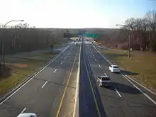 The Northern State Parkway eastbound at the junction with exit 33, the Wantagh State Parkway in West Jericho