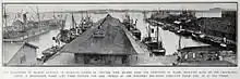 Charles Ranson commissioned Arthur P. Wilson to design the £6000 (or £5000)[39] building opposite the wharf used by their steamers, on newly reclaimed land, leased from Auckland Harbour Board (AHB). In 1899 NSS moved from Palmerston Buildings on Queen St to their new 2-storey brick building with dark green joinery, a public office, manager's office, space for other staff, telephone room and a boardroom. It had high ceilings and on each level the floor above was supported by cast iron columns. On Quay St a central door, gave access to the main office and floor above, and an eastern door accessed the wharves (now Marsden Wharf)[40] and warehouse to the rear of the building. A boardwalk allowed passengers to cross to the steamers without walking through mud. A third floor was added in 1921 to provide accommodation and a laundry. In the 1940s many of the original features were lost. Originally the building stood alone. The land on the other side the building was their yard until the 1950s when AHB roofed it over as a garage in an attempt to compete with trucking firms. When NSS ceased trading, the building reverted to AHB.[41] In July 1988 the Historic Places Trust listed it as "Category 1".[42] It is now a bar.[43]