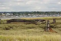 ![]() The remains of a pair of Thames barges on Northey Island | |