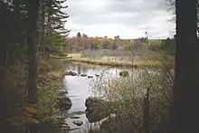 According to the United States Census Bureau, the town has a total area of 28.9 square miles (74.8 km2), of which 28.5 square miles (73.8 km2) are land and 0.39 square miles (1.0 km2) is water, comprising 1.27% of the town.[1] It is drained by the Merrimack River, primarily by way of the Winnipesaukee River and its tributary Williams Brook. The Winnipesaukee River forms the northern boundary of the town, separating it from Tilton to the north. The town is characterized by gently rolling hills, the highest point in town being the summit of Bean Hill at 1,500 feet (460 m) above sea level, near the southern border. Two significant water bodies in Northfield are Sandogardy Pond in the southwest corner of town and Knowles Pond on the east side of town.