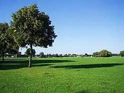 Today, Northwick Park includes nine standard pitches, three cricket pitches, two Gaelic football pitches, two flying areas and eight softball areas.[6] The park also consists of a 1,133 square metre pavilion - a single storey brick building constructed circa 1950 with a hall, ancillary area for sports, and dedicated car park.[7] The pavilion has also been hired for filming.[8]