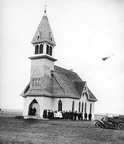 The Norway Lutheran Church and Cemetery was located 10 miles from south of Denbigh, North Dakota and were listed on the National Register of Historic Places (NRHP) in 1994. The NRHP listing includes the main church structure, a cemetery, and two contributing privies to the west and rear of the church, all situated on a 4.4 acres (1.8 ha) site. A pyramid-shaped monument topped with an iron cross is located at the northeast corner of the cemetery and marks site of an older log church. Norwegian skier Sondre Norheim was buried in the cemetery in 1897.[1][2]