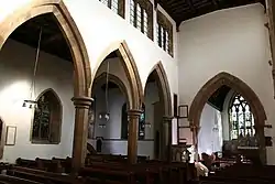 During the 12th and 13th centuries other traces were lost through major work creating the church we now see. Around 1180–1200, the south aisle was added and the south door moved to its present position. A tower with three storeys was built shortly after 1200 and by 1250 the north aisle was added. A further expansion took place around 1300, partly paid for by a legacy from Mr John Clarell, prebendary of Overhall (d.1295). The north and south transepts were added, the Chancel lengthened and, a few years later, the south porch built. Finally between about 1450 and 1500, the nave was heightened with a clerestory (a row of flat-headed windows) inserted, the transepts and Chancel were re-roofed and a fourth storey with battlements an gargoyles added to the tower. The 19th century, largely sympathetic, restoration (Chancel, 1857-8, rest of church, 1872-5) by Ewan Christian faithfully preserves St Laurence's medieval appearance. The only major structural change was that Christian restored the Chancel to its 13th century form by removing the low pitched roof that was part of the 15th century refurbishment.