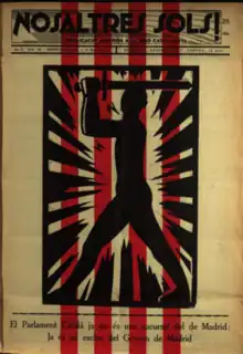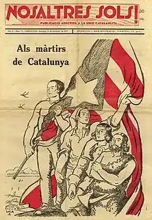 Nosaltres Sols! (English: Ourselves only!) was a Catalan nationalist paramilitary political movement from the 20th century.[1] It was born in 1931, in a rented space property of the political party Unió Catalanista (Catalan Unity) and created a weekly journal with the exact same name as well . The purpose of the organization was to confront those who were considered enemies of Catalonia, mainly Spanish unionists, but also anarchists, communists and fascists.