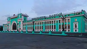 Novosibirsk-Glavny is the primary passenger railway station for the city of Novosibirsk in Russia, and an important stop along the Trans-Siberian Railway and Turkestan–Siberia Railway. The station is one of the largest in Russia. The main building takes an area of 30,000 square metres.[2]