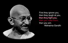 In 2014, the story gained publicity after a reposted Critical Miss comic caused a discussion in the comment section on Reddit over why Gandhi was made that aggressive.[3] Ten days later, the video game news website Kotaku posted the article "Why Gandhi Is Such An Asshole In Civilization",[7] which prompted other news websites and blogs to republish the information.[3][4] Soon, "Nuclear Gandhi" became a common video game Internet meme and joke.[3] Moreover, as the "Nuclear Gandhi" meme spread, many people remembered that they were particularly annoyed by India in the first games of Civilization series, a false memory attributable to the Mandela effect.[3] Information about "Nuclear Gandhi" was later added to Know Your Meme, which stated that the bug first appeared in Civilization II.[4]