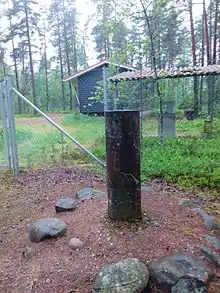 Photograph of one of the pillars of standard baseline in Nummelanharju (municipality of Vihti).