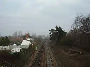The Andover and Redbridge Railway was authorised in 1858 and opened in 1865, by which time it had been absorbed by the London and South Western Railway (LSWR), this occurring in 1863.[1] The station at Nursling was opened by the LSWR on 19 November 1882.[2] Becoming part of the Southern Railway during the Grouping of 1923, the station passed to the Southern Region of British Railways on nationalisation in 1948. It was closed by the British Transport Commission on 16 September 1957.[2]