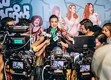 In 2018, she had posted dozens of sit-com style comedy videos to Facebook. Her posted comedy videos on Facebook was noticed by the film industry and soon, film casting offers came rolling in.[9] She made her big-screen debut with the main role in the comedy film Kyar Kyar Kyite Kyite, alongside Myint Myat, Min Maw Kun, Khin San Win, Linn Linn and Ma Htet.[10][11] The film was directed by Pyi Hein Thiha which premiered in Myanmar cinemas on 29 August 2019.[12][13] Her portrayal of the LGBT character was praised by fans for her acting performance and character interpretation, and experienced a resurgence of popularity.[1] She then starred in her second film A Htein Taw where she played the main role with Myint Myat, Shin Mwe La, Linn Linn and Ei Chaw Po.[14]