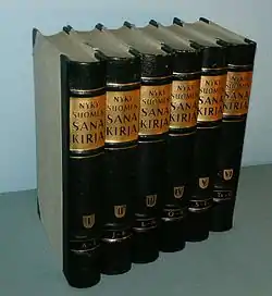 Nykysuomen sanakirja (The Dictionary of Modern Finnish or The Dictionary of Contemporary Finnish) is a Finnish language dictionary published between 1951 and 1961 in six separate volumes. The dictionary was edited by the Finnish Literature Society and published by WSOY. It is the first monolingual Finnish dictionary and has over 201,000 headwords. It is the most comprehensive Finnish language dictionary. Throughout the years, it has enjoyed major academic significance. The dictionary has never been updated: all later editions contain the same content, which reflects the language as it was before the mid-20th century. The need for a modern dictionary has led to the publication of The New Dictionary of Modern Finnish.
