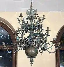The discovery was transferred to the Auschwitz Jewish Center in Oświęcim, where the artifacts were catalogued, inventoried and restored. Some of the items from the Great Synagogue are on display at the permanent exhibition at the Jewish Museum, which is part of the Center.[8] The exhibition presents, inter alia, the ner tamid lamp, elements of the candlesticks, marble ornaments, and a complete hanging chandelier that has been preserved in its entirety.[9]