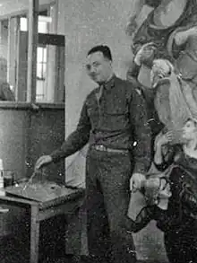 O. (Osvaldo) Louis Guglielmi (April 9, 1906 – September 3, 1956) was an American painter. He was well known in New York, but soon forgotten after his death, as abstract expressionism came to overshadow artists like him.[3] There are elements of precisionism, surrealism, geometric abstraction, regionalism, and social realism in his work.[4] His paintings often commented on poverty and other social and political themes; bleakness and death appear regularly in his pre-war works. With Walter Quirt and James Guy, he was a prominent exponent of "social surrealism".[5] After the war, his painting became more planar and abstract, with elements of cubism, and he disavowed the personal sadness in his earlier works in favor of expressing the "exuberance and organic means of life itself".[3] The New York Times also attributed his decline to his being "a relentless borrower, an irrepressible eclectic who seemed to prey voraciously on the styles of others".[6]