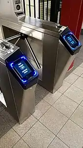 In 2016, the MTA announced that it would begin designing a new contactless fare payment system to replace the MetroCard.[11][12][13] The replacement system was initially planned for partial implementation in 2018 and full implementation by 2022.[14] In October 2017, the MTA started installing eTix-compatible electronic ticketing turnstiles in 14 stations in Manhattan. The eTix system, already used on the Long Island Rail Road and Metro-North Railroad, allows passengers to pay their fares using their phones. The system would originally be for MTA employees only.[15]