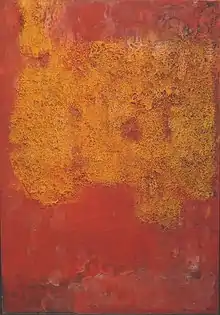 The critic of the time was very positive, as expressed in an article written by the French art critic Raoul-Jean Moulin: “[...] the painter puts under test the stone, the plant, the air, the light[...] Natural materials, harsh and whirling, streams of eruptive lava, petrified meteorites[...] moments in the formation of the universe.”; or as in Georges Boudaille's: “Matter is embossed, rises now like the earth’s crust, now like petals of flowers; forms proliferate and leave the limits of the frame to invade space[...] there are lands, but also volcanic lava, tree barks, rocks, mountains.”.[41]
