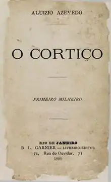 O Cortiço (titled in English: The Slum) is an influential Brazilian novel written in 1890 by Aluísio Azevedo.[1][2] The novel depicts a part of Brazil's culture in the late 19th century, represented by a variety of colorful characters living in a single Rio de Janeiro tenement.[3] It is written with the intention of belonging to the Realism movement leaning towards Naturalism, much like Flaubert's Madame Bovary.